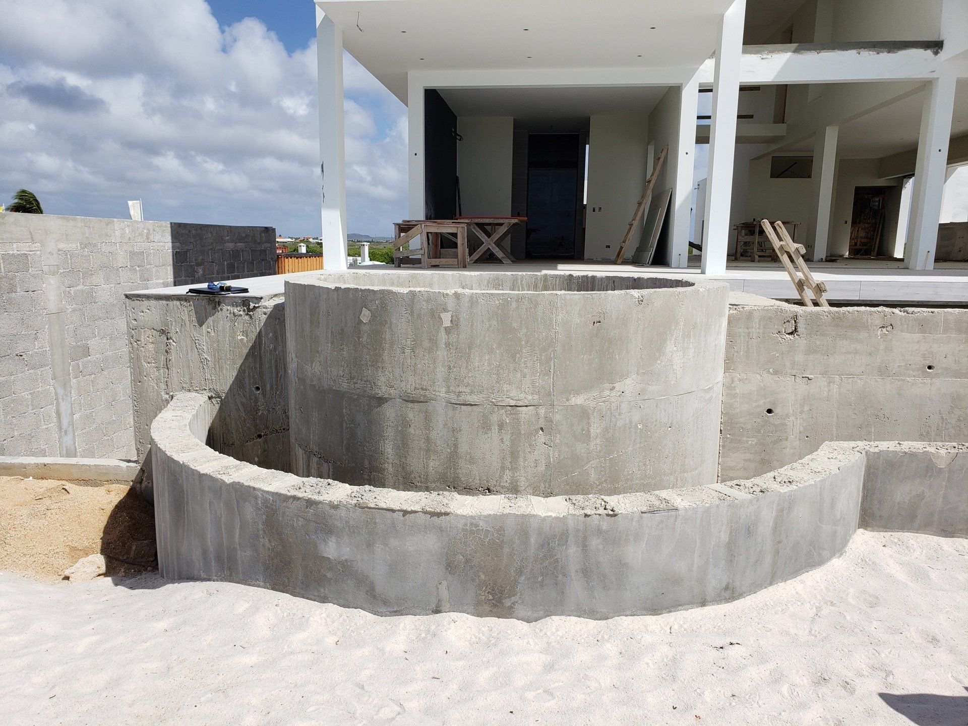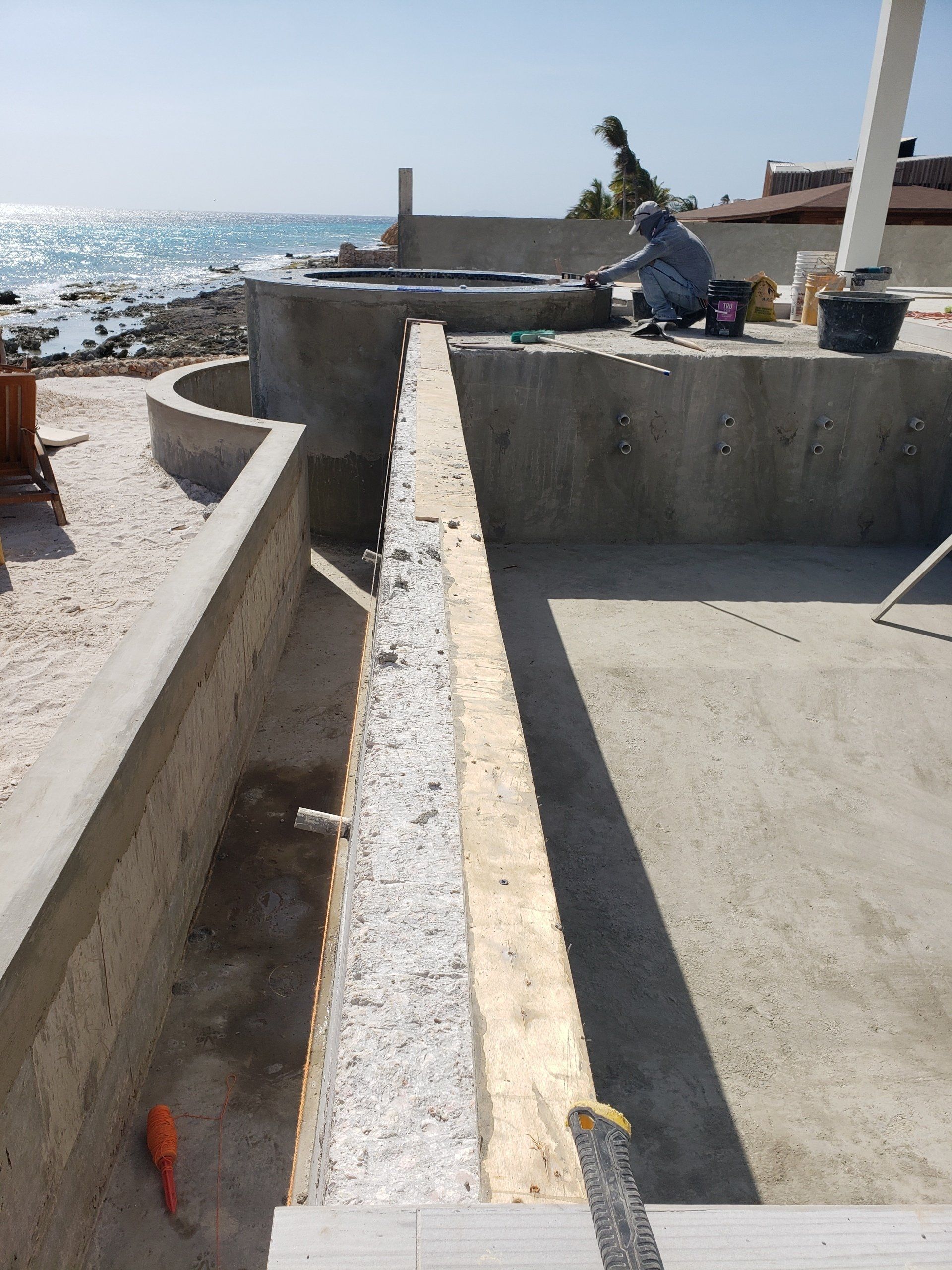 Creating the structure for the spa and infinite pool.